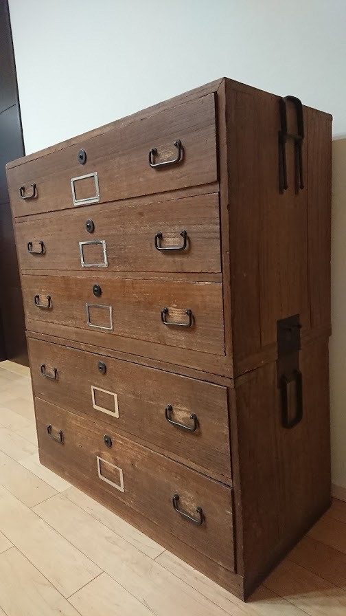60年たった桐箪笥です。3段に分かれ高さ180センチほどあります。長年の汚れやシミがあります。