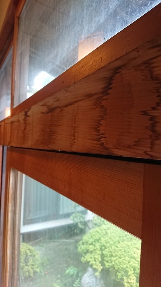 汚れがおちて、シミもわからなくなりました。木製サッシは、既存のままです。
